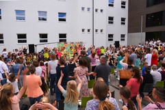 Das Eröffnungskonzert am vergangenen Donnerstag war ein voller Erfolg. Der obere Pausenhof war voll gefüllt, ein Ort mit netten Gesprächen, Beiträgen aus dem Unterricht und auch im Neubau selbst gab es einiges zu sehen und zu erleben.